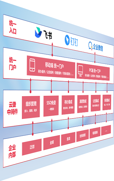 对协作平台提供支持服务,,,支持企业应用与协作平台对接,,包含组织同步、、消息集成、、、待办集成等。。。支持目前主流的协作平台:钉钉、、、企微和飞书。。。